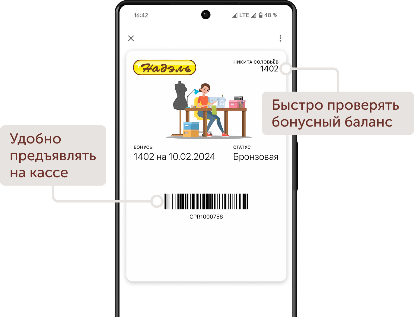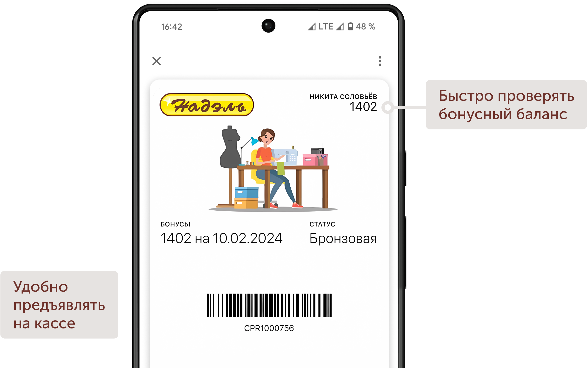 - Вы сможете легко проверить баланс и предъявить карту в магазине